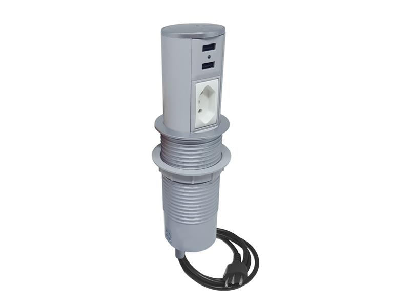 Com abertura automatizada, o Mini Totem Automático vem para revolucionar o mercado de torres de tomadas. Para acioná-lo basta um click e as tomadas subirão prontamente. Gabarito de corte: Ø 65mm.