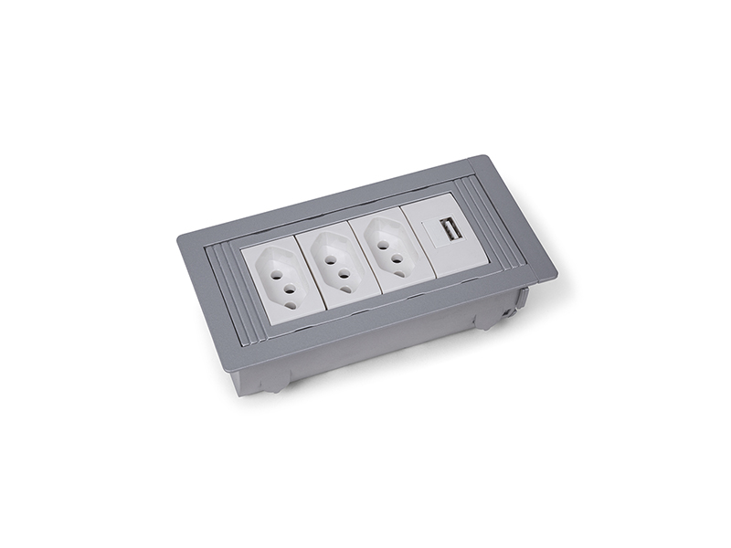 Opção para mesas ou móveis onde é necessário múltiplos pontos de energia e/ou telecomunicações.