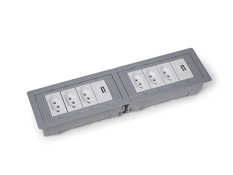 Opção para mesas ou móveis onde é necessário múltiplos pontos de energia e/ou telecomunicações.