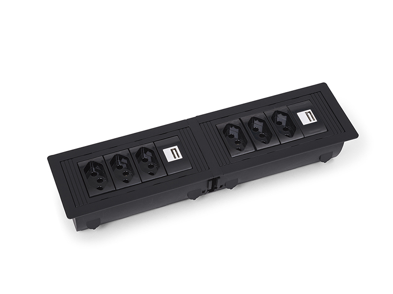 Opção para mesas ou móveis onde é necessário múltiplos pontos de energia e/ou telecomunicações.